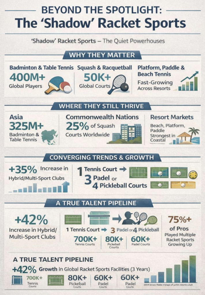 Don’t be fooled — while pickleball, padel and tennis grab the headlines, a bunch of “shadow” racket sports are quietly