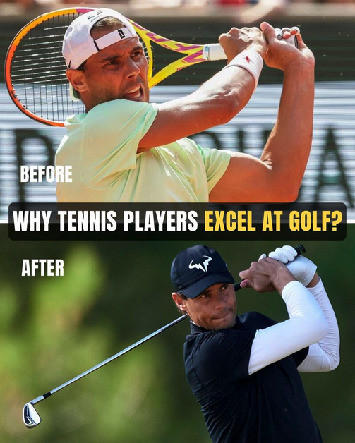 This image stopped me scrolling. A before/after of Nadal’s tennis swing morphing into a golf swing — and it got