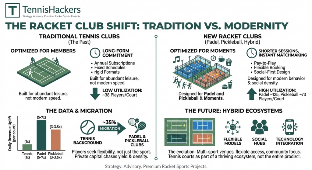 By 2030, most “tennis clubs” won’t really exist anymore.They’ll be racket platforms. Here’s what that actually means in practice: •