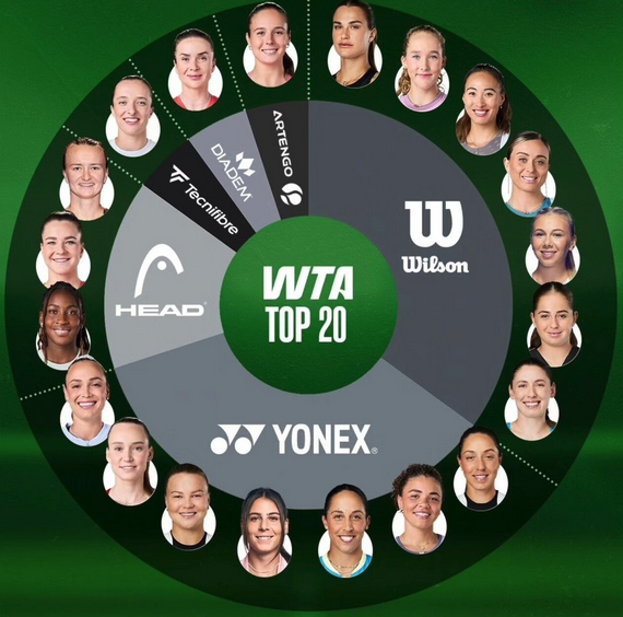 Wilson now accounts for just 3 of the top 20 male players, outpaced by Head (6), Yonex (5), and Babolat (4). Brands like Yonex and Babolat have successfully targeted the new generation with lighter, spin-friendly frames and tech-driven customization—appealing to the faster, more physical game of modern tennis. With Federer retired and few marquee male names carrying the Wilson torch, the brand’s presence on the men’s side has clearly declined.